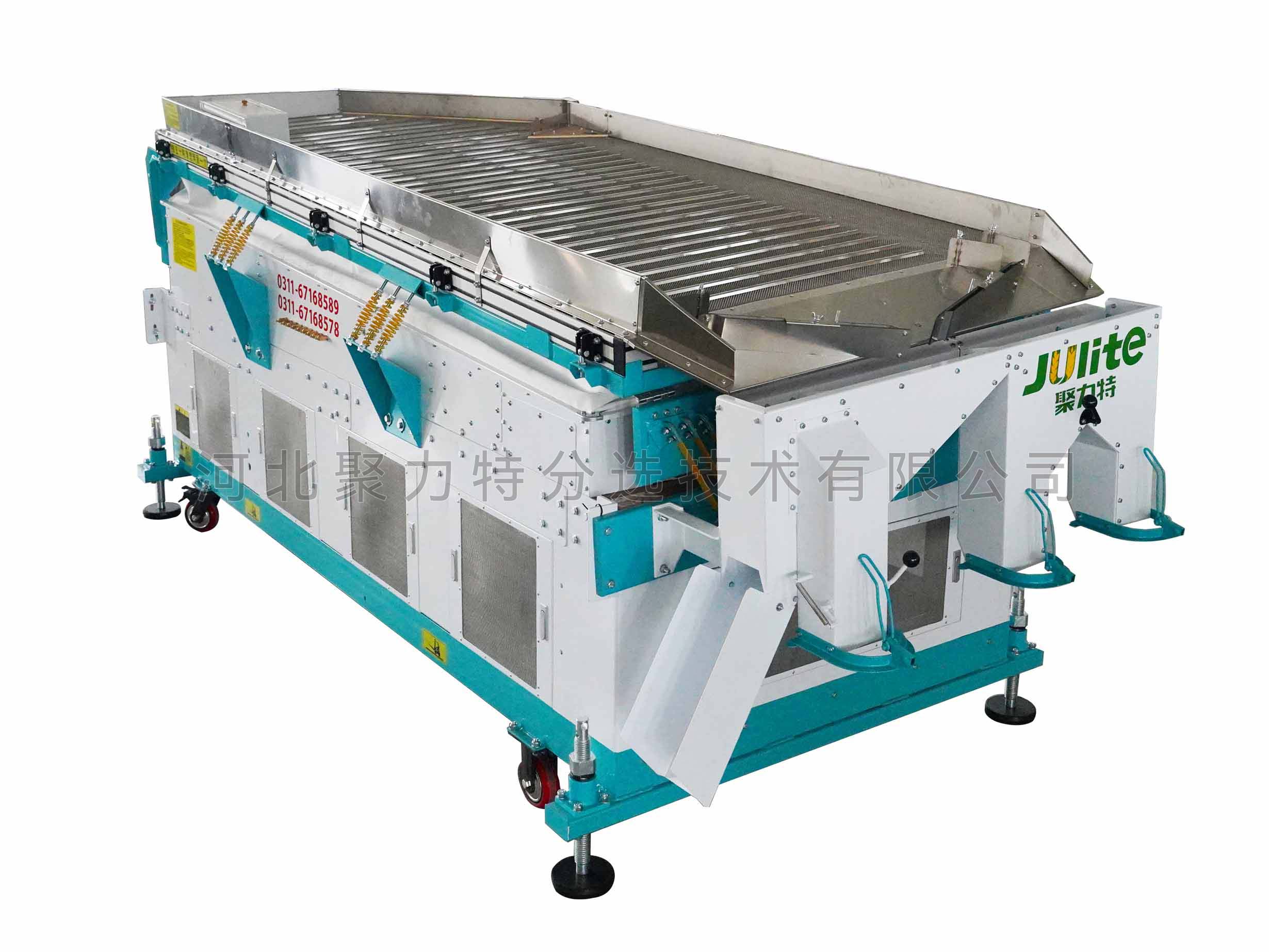 1、凈度高:臺(tái)面振動(dòng)和勻風(fēng)結(jié)構(gòu)經(jīng)過(guò)嚴(yán)密設(shè)計(jì),出糧口精細(xì)分糧,大大提高了篩選精度;